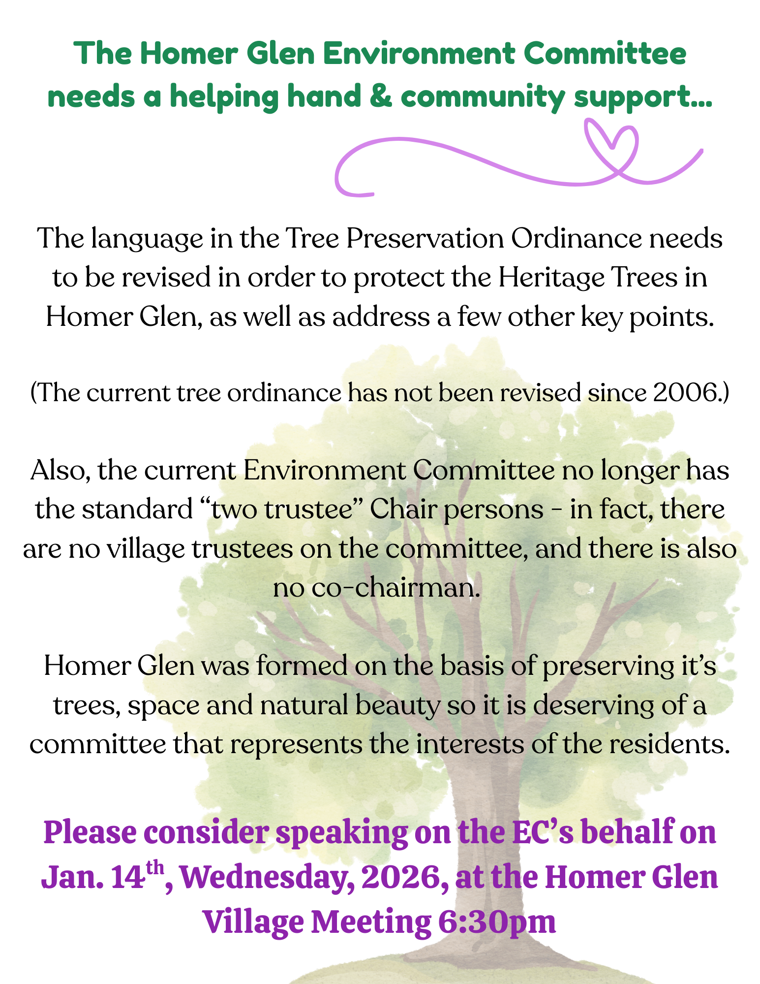 The Village of Homer Glen was created by the residents who wanted to preserve it’s unique and valuable resources; it very well may be the residents who ultimately save it…are you one of them?